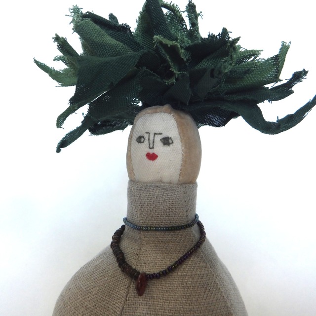 サイズ:Φ10cm H22cm 多少誤差があります。 重さ:115g 素材:麻・綿・ビーズ・ポリエステル綿・ウエイトビーズ・古布 どこかの民族衣装を纏ったようなフラワーではなく、グリーンのドールです タイやインド等アジアの刺繍布、民族衣裳の古布、リボンなどどの面から見ても絵になる布の魅力をお楽しみください 下部にはウエイトビーズが入っているので安定感があります。 玄関、リビング、寝室と様々なシチュエーションでインテリアのアクセントに。 布製のハンドメイド商品ですので強い衝撃などにご注意ください