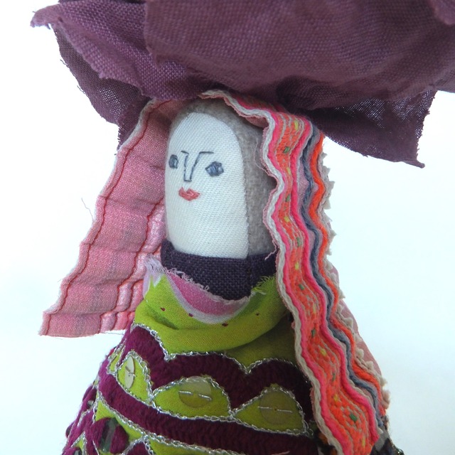 サイズ:Φ10cm H21cm 多少誤差があります。 重さ:117g 素材:麻・綿・ビーズ・ポリエステル綿・ウエイトビーズ・ミラーワーク古布・リボン コサージュのような花と花瓶のお人形です。 インド刺繍、ミラーワーク、リボンなど、様々な素材を使った民族衣装のようなドールです。 下部にはウエイトビーズが入っているので安定感があります。 玄関、リビング、寝室と様々なシチュエーションでインテリアのアクセントに。 布製のハンドメイド商品ですので強い衝撃などにご注意ください 刺繍などの古布を使用しています。 ダメージも味としてお楽しみください。 また、弱くなっている部分もありますのでお取り扱いにご注意ください。 *顔、花の部分をリニューアルしました。