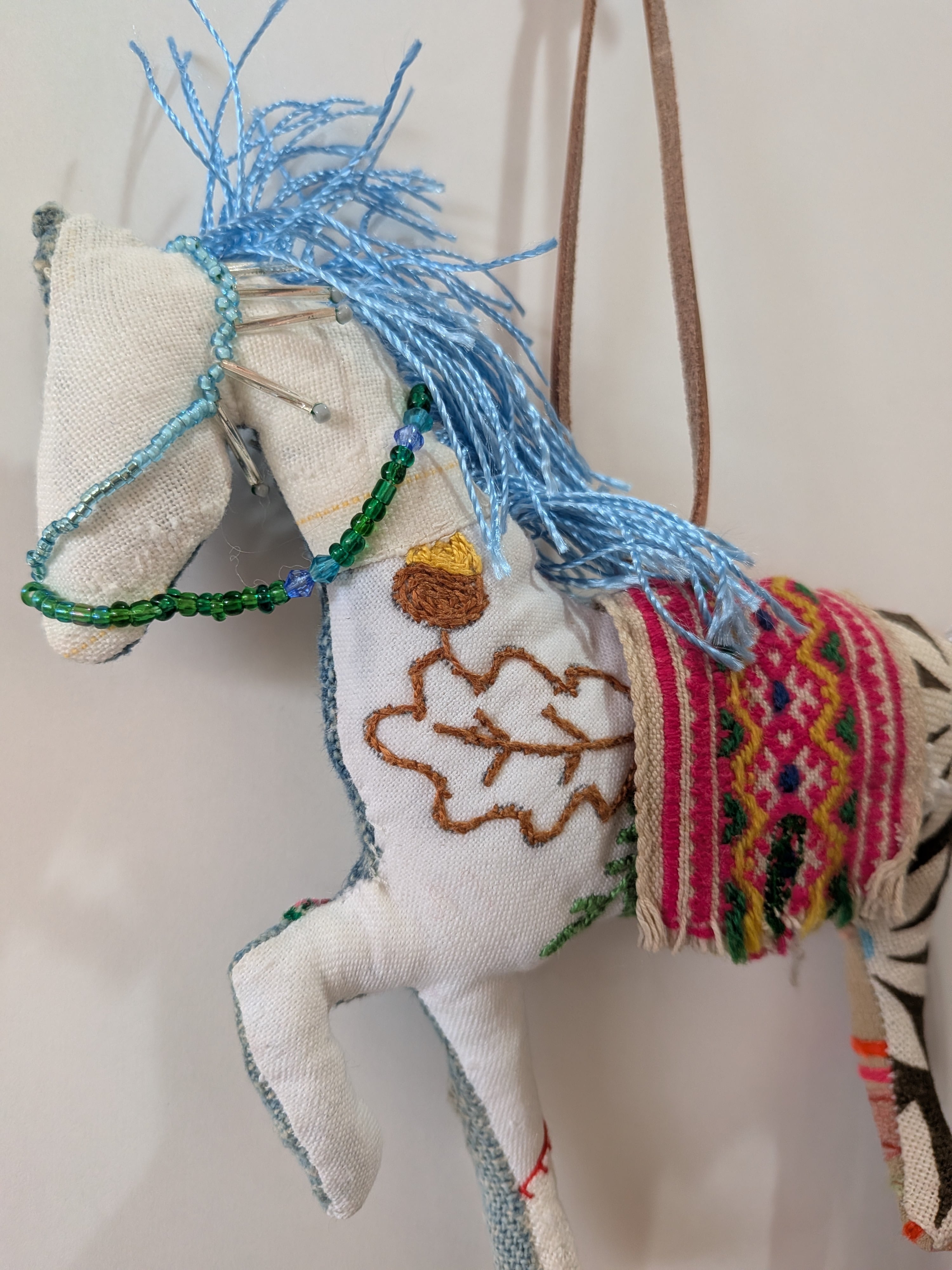 いろんな国の生地を使った約15cmの馬のオーナメントです(フリンジのみ20cm)