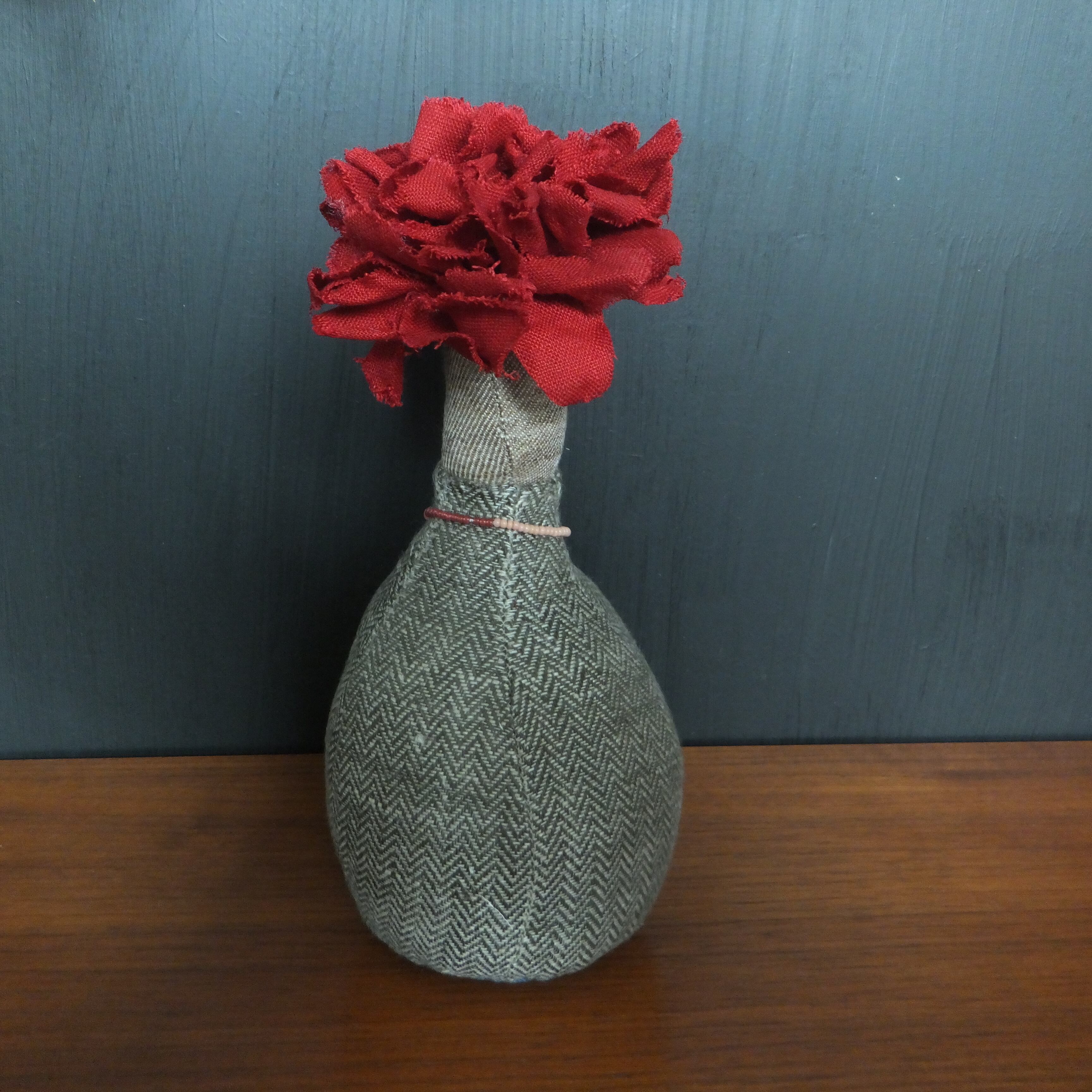 flower doll * moss green herringbone and red