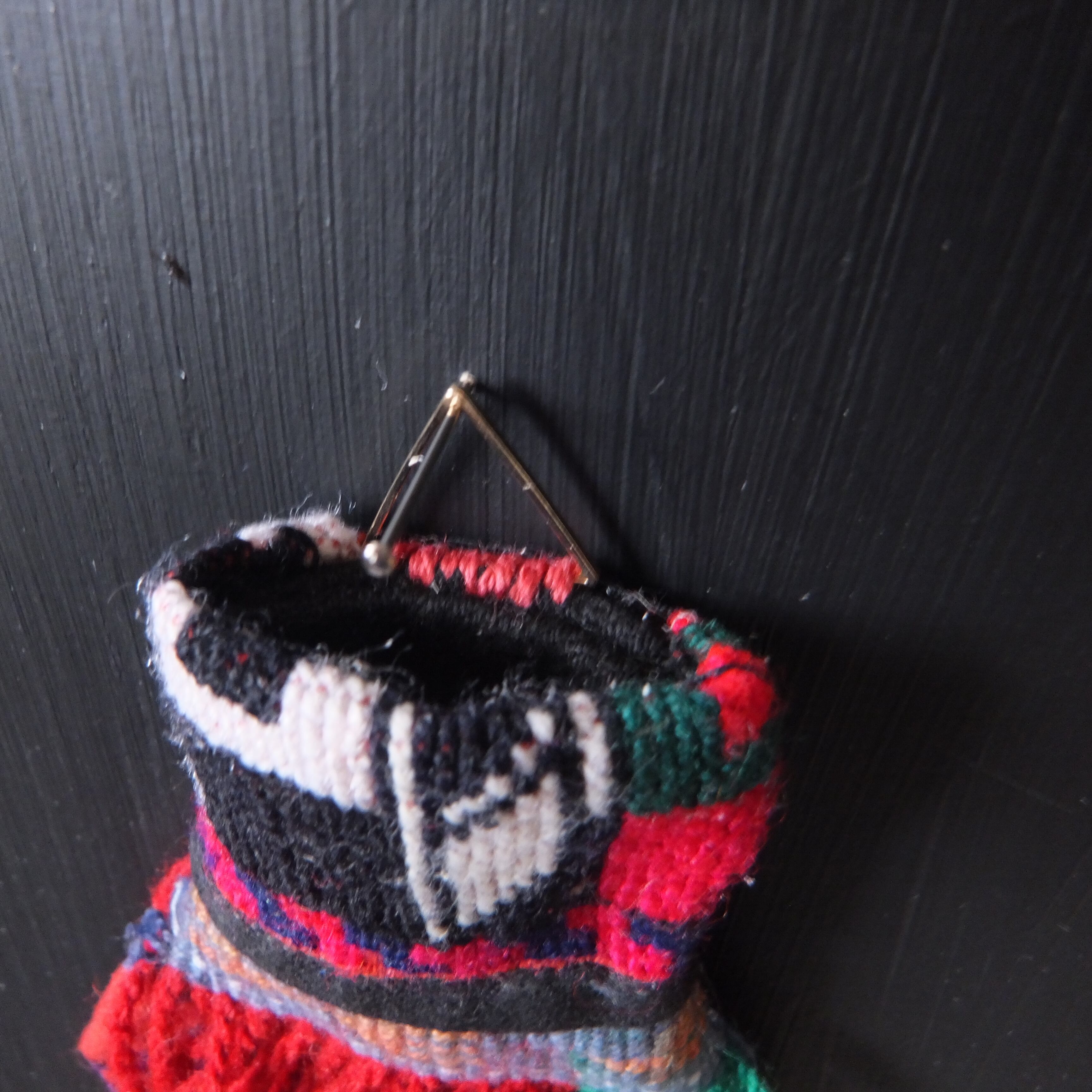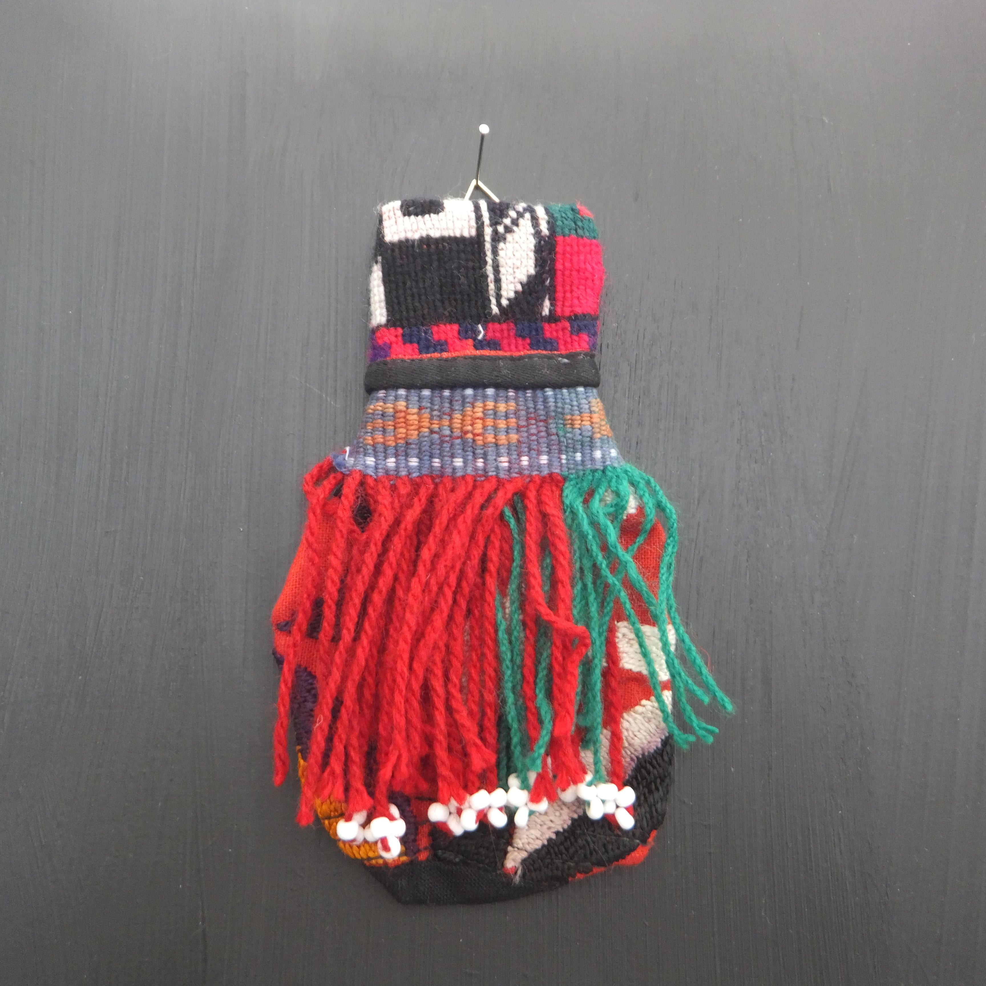民族の古布やパーツを縫い合わせて壺のカタチにしました。