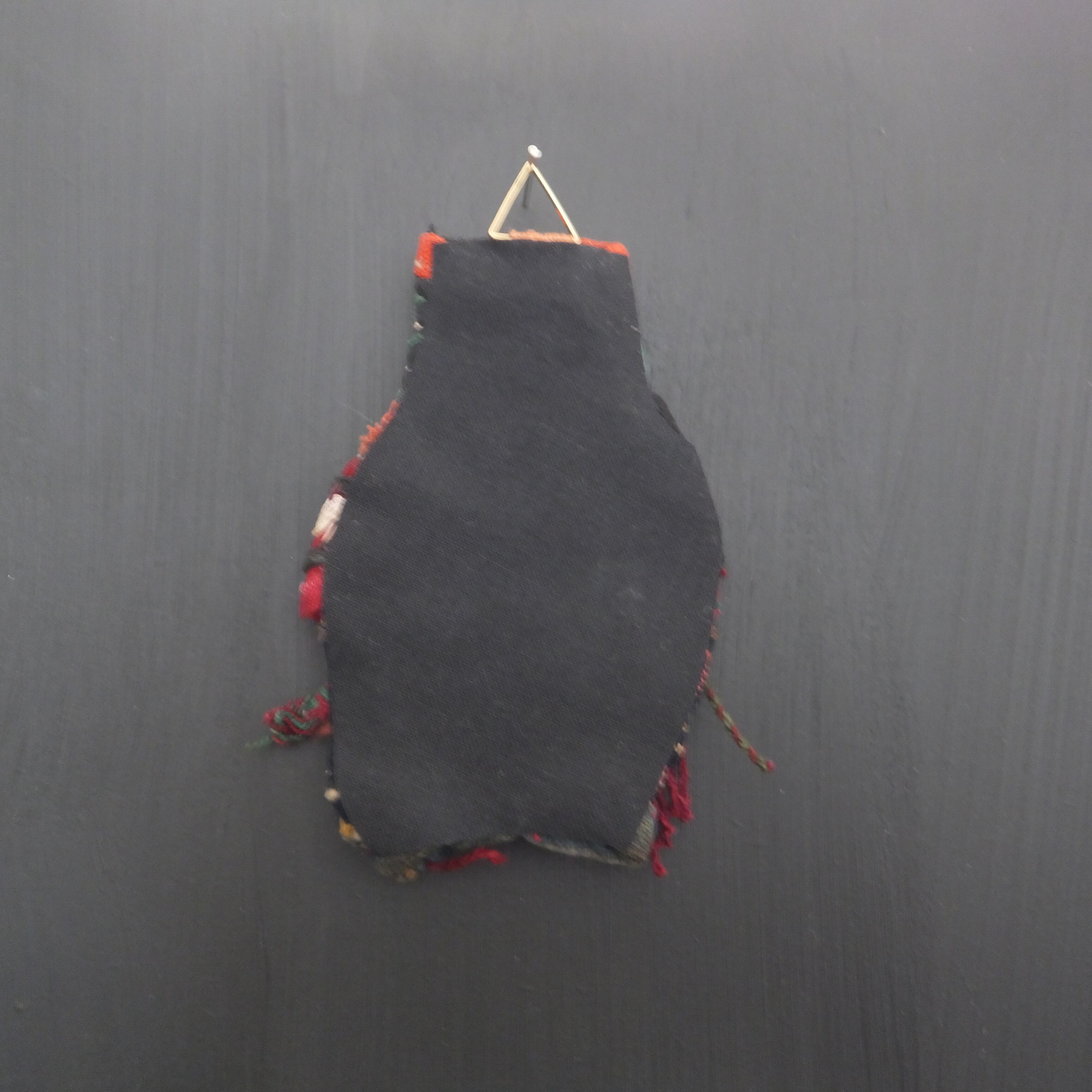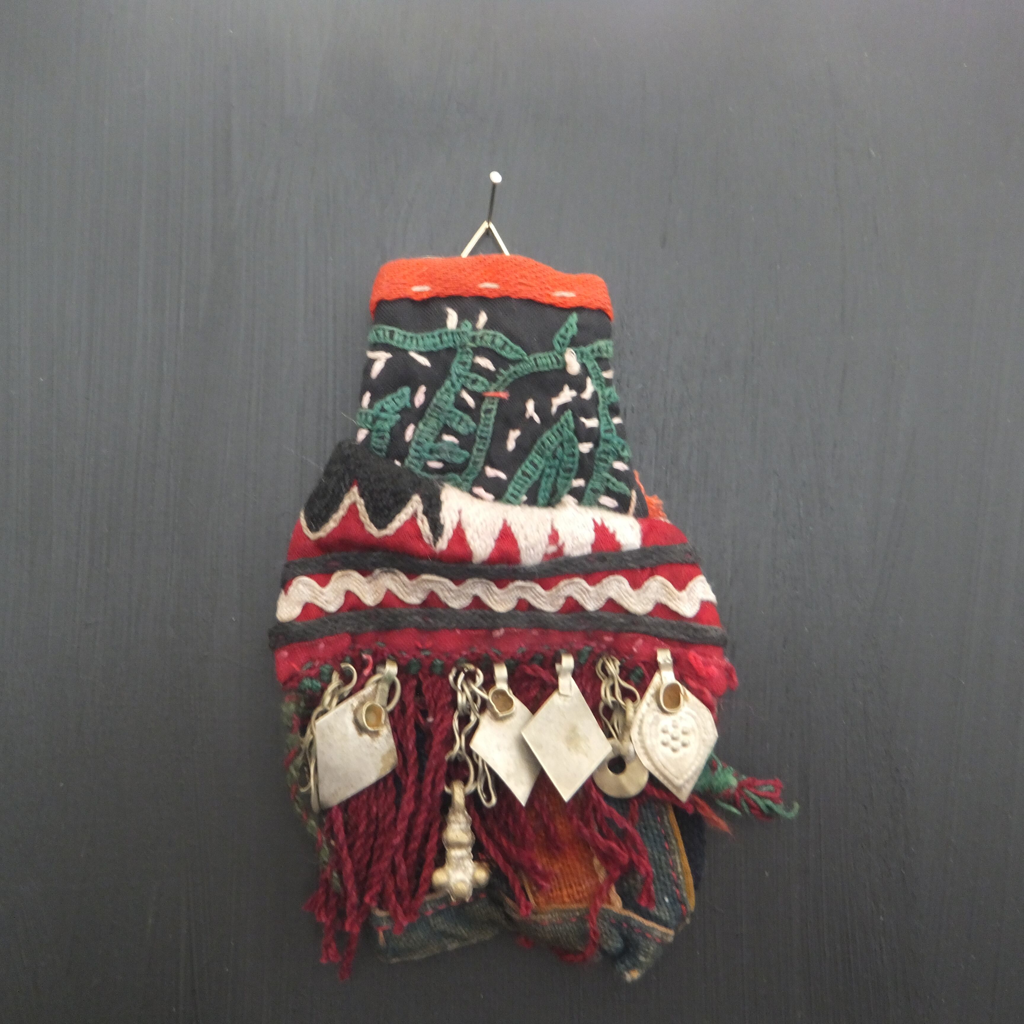 民族の古布やパーツを縫い合わせて壺のカタチにしました。